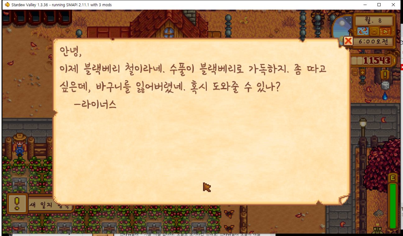 참고로 이때 부터 블랙베리를 마을 돌아다니면서 얻을 수 있는데,